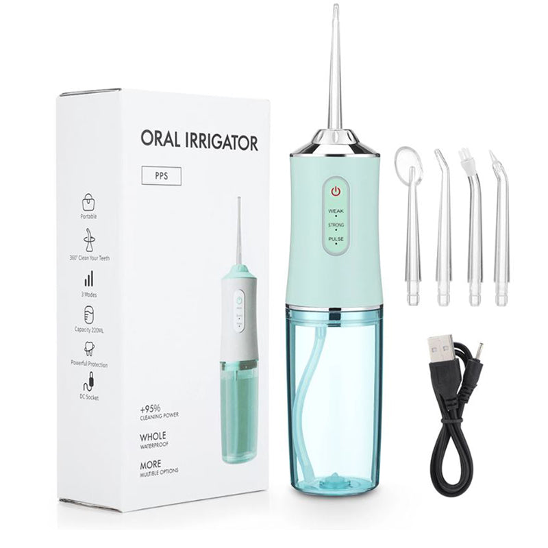 3. Zobotrebec z vodnim curkom je vodoodporen po standardu IPX7 za celotno telo in ima 220 ml rezervoar za vodo, ki ima dobro življenjsko dobo in je praktičen za vsakodnevno uporabo brez potrebe po ponovnem polnjenju;