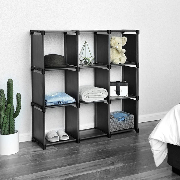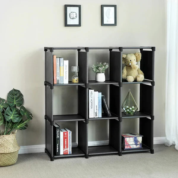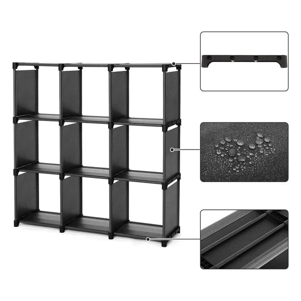 Ta večnamenska polica z 9 kvadratnimi predali prinaša popolno ravnovesje med praktičnostjo, organizacijo in modernim videzom. Zasnovana za dnevno sobo, spalnico, hodnik ali pisarno, je idealna za shranjevanje knjig, čevljev, oblačil, igrač in dekoracije. Zahvaljujoč modularni konstrukciji jo je enostavno prilagoditi vašemu prostoru, njen minimalističen dizajn pa se bo ujel z vsakim interierjem.
